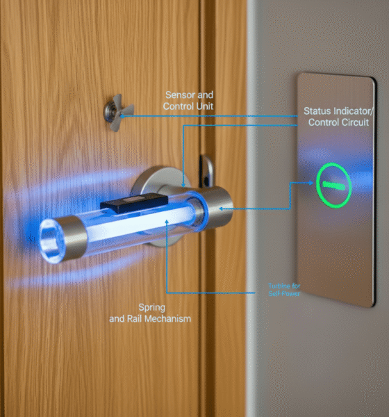 An automatic airplane tray table disinfectant system, which disinfects the table within just 18 seconds.