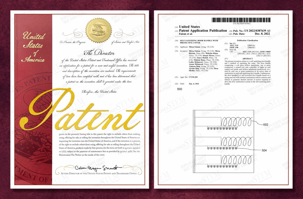 This team of young inventors at DiscoverSTEM innovated a self-powered, self-sanitizing door handle that disinfects itself with every use.